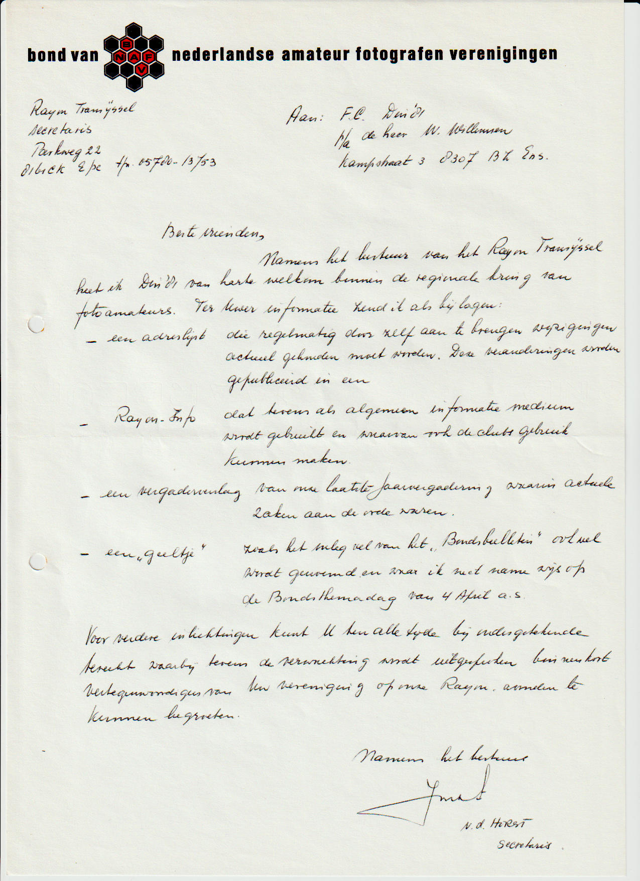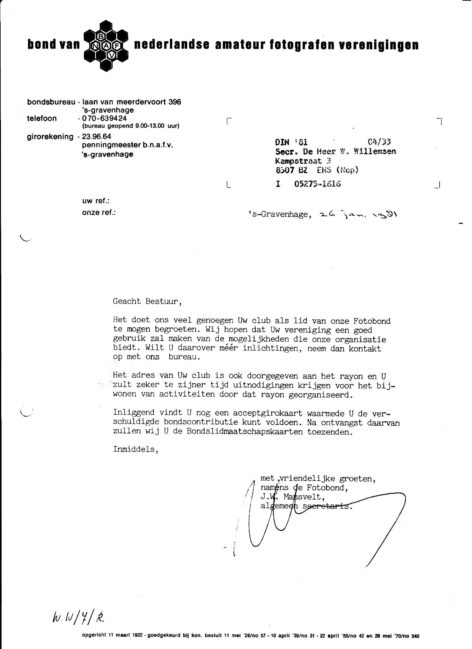 Hieronder de eerste statuten en correspondentie met de B.N.A.F.V., de bond van nederlandse amateur fotografen verenigingen. (Klik op een afbeelding voor een vergroting)